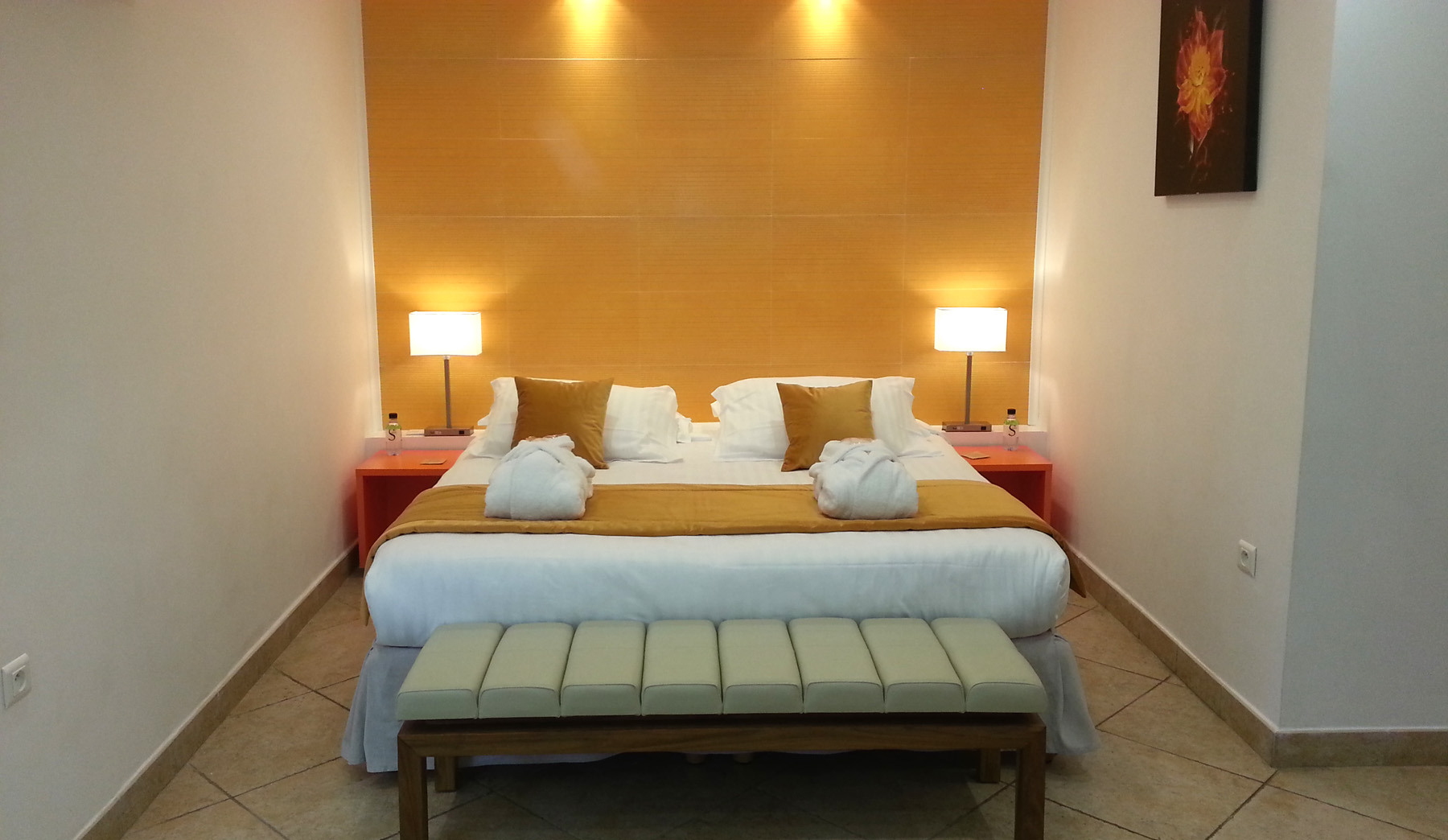 Piscine chauffée, solarium, hammam et sauna complètent naturellement l'expérience de détente de la chambre.